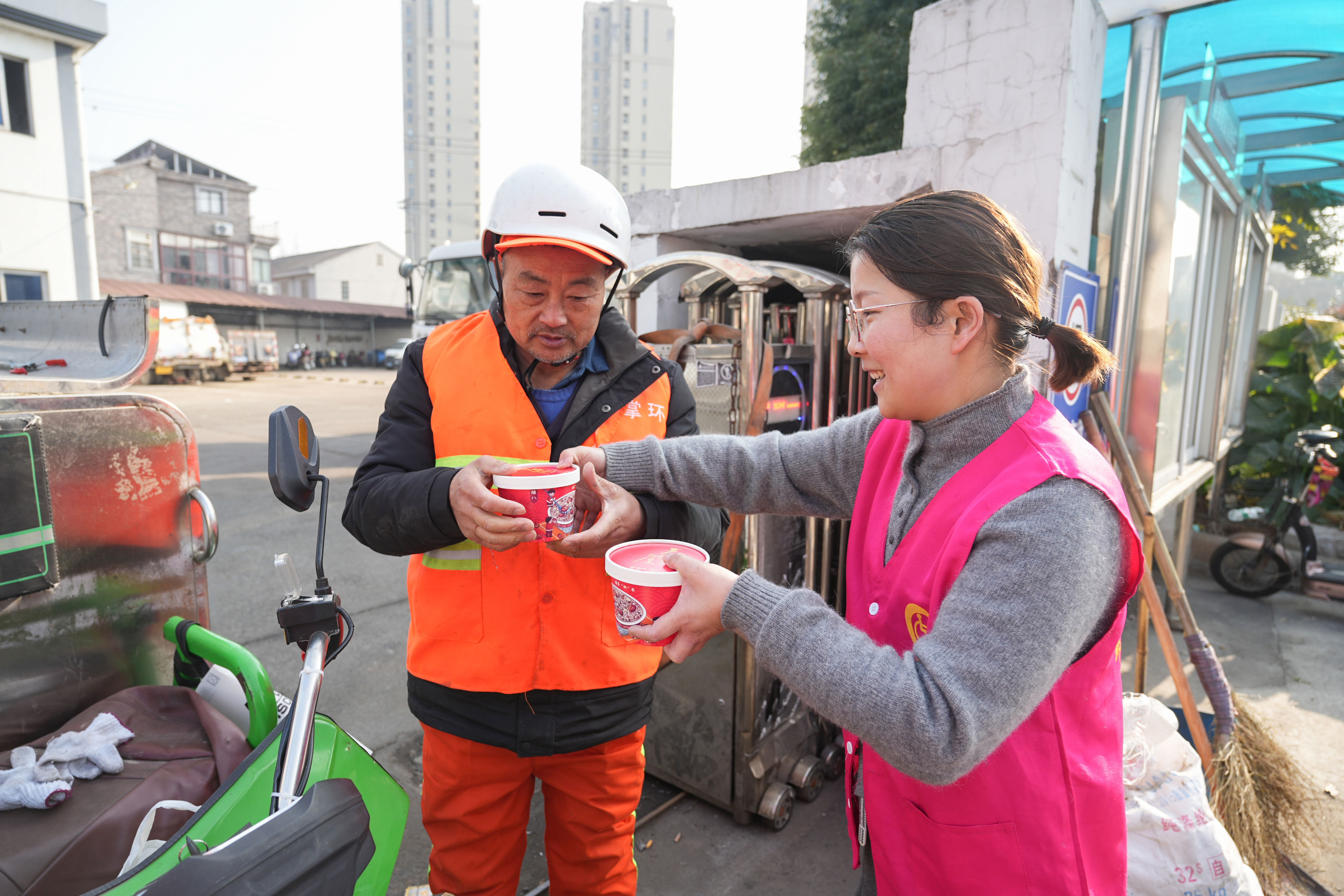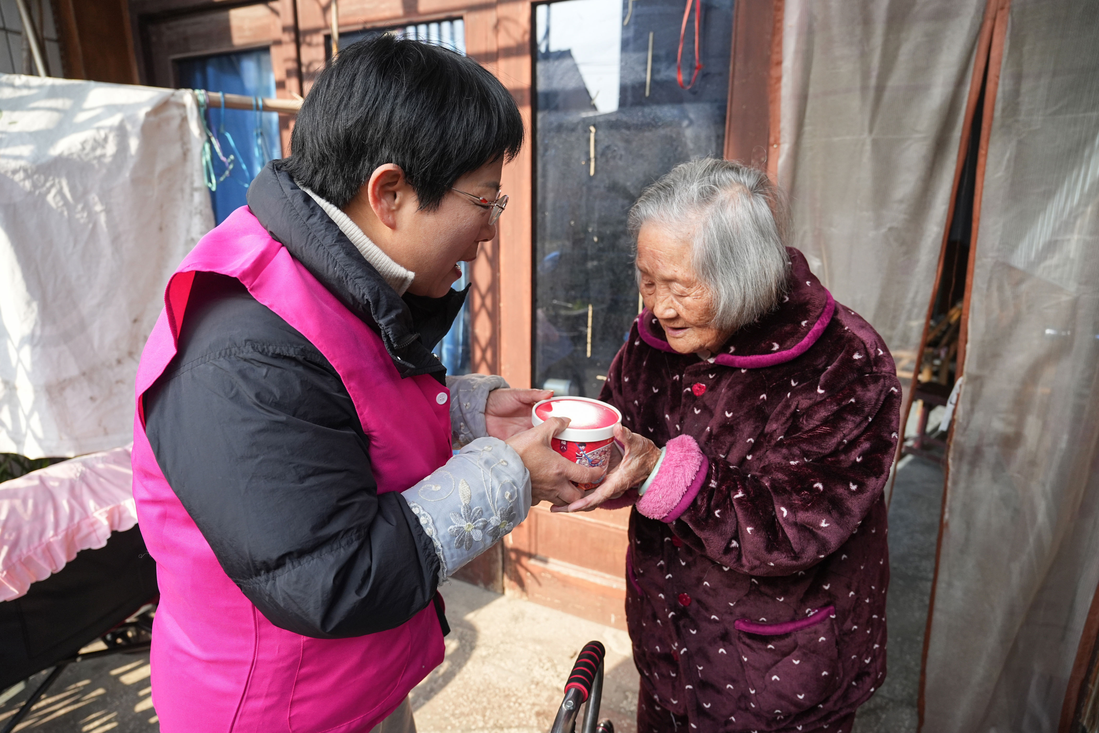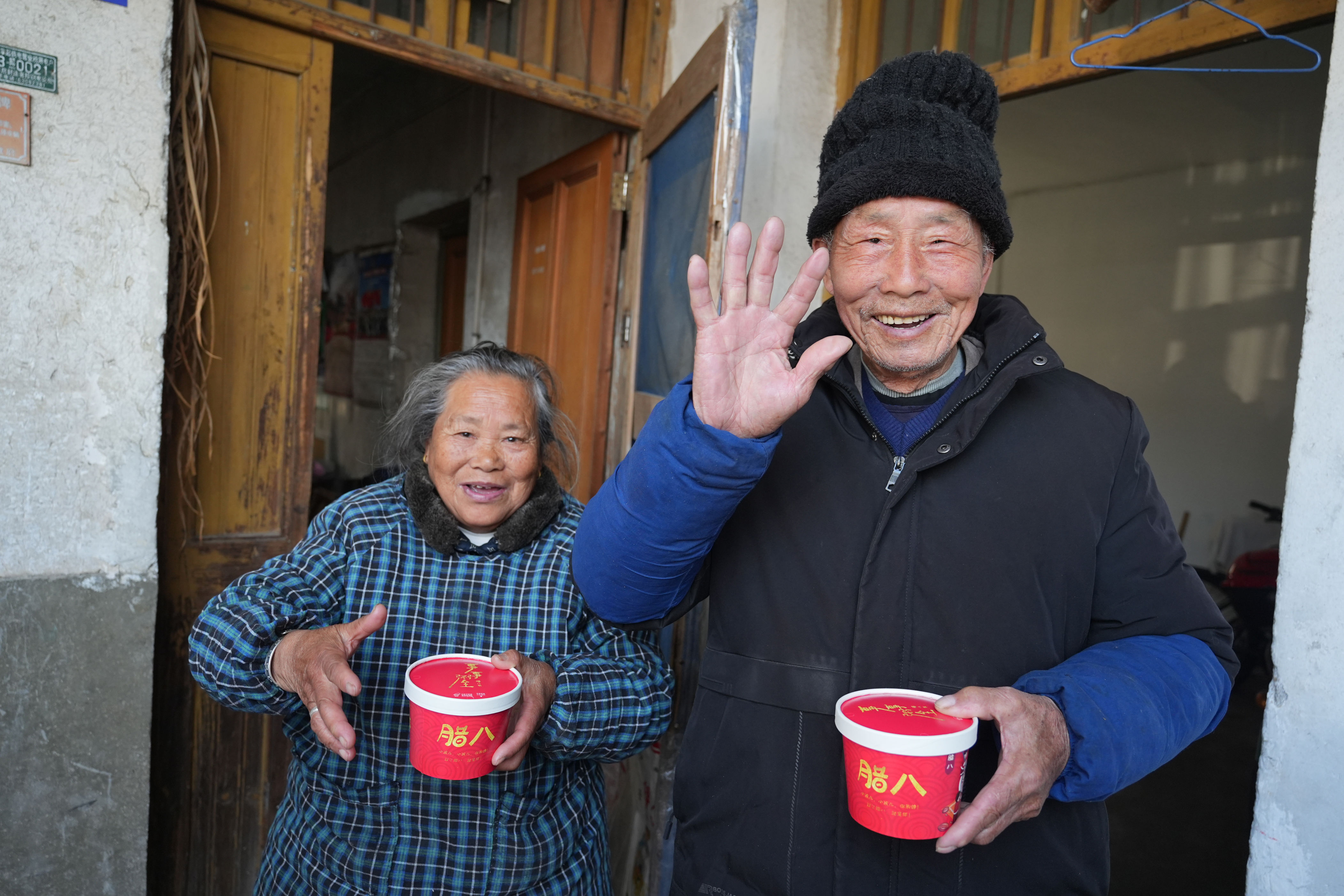 在戎家村、古窑浦村、陈家村、厉家村等村庄,老人们早已起床洗漱好,他们闻到粥味就不约而同地聚起来。麻春燕、厉聪飞、虞建玉,厉丽飞、虞丽聪等志愿者将一碗碗热气腾腾的腊八粥递到老人手中。“好香啊!”“这粥用料足,煮得比家里还好。”“喝进去热乎软乎,都不用我费牙咬了!”老人们抿着嘴尝试了一口后,笑呵呵地说道。